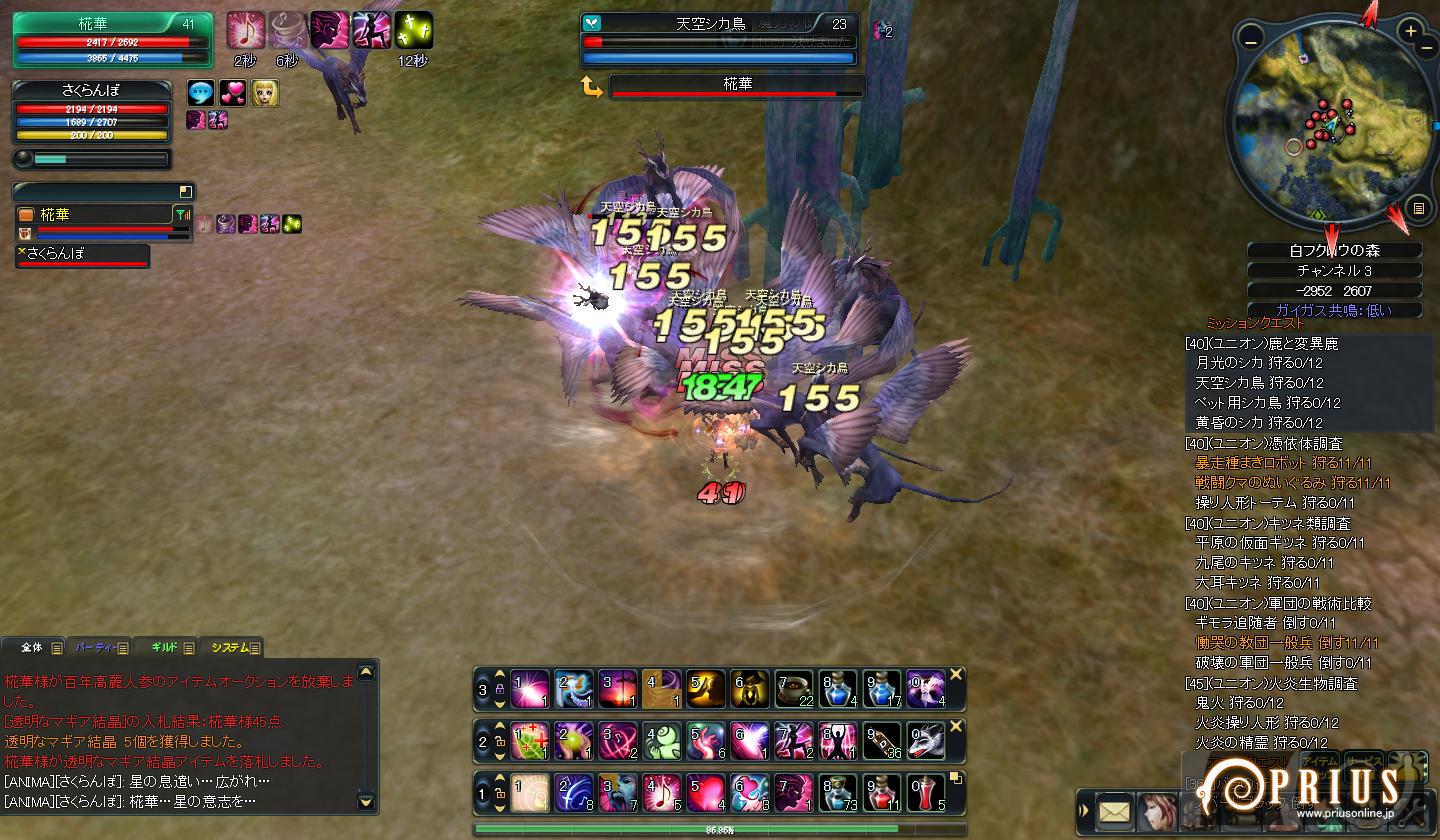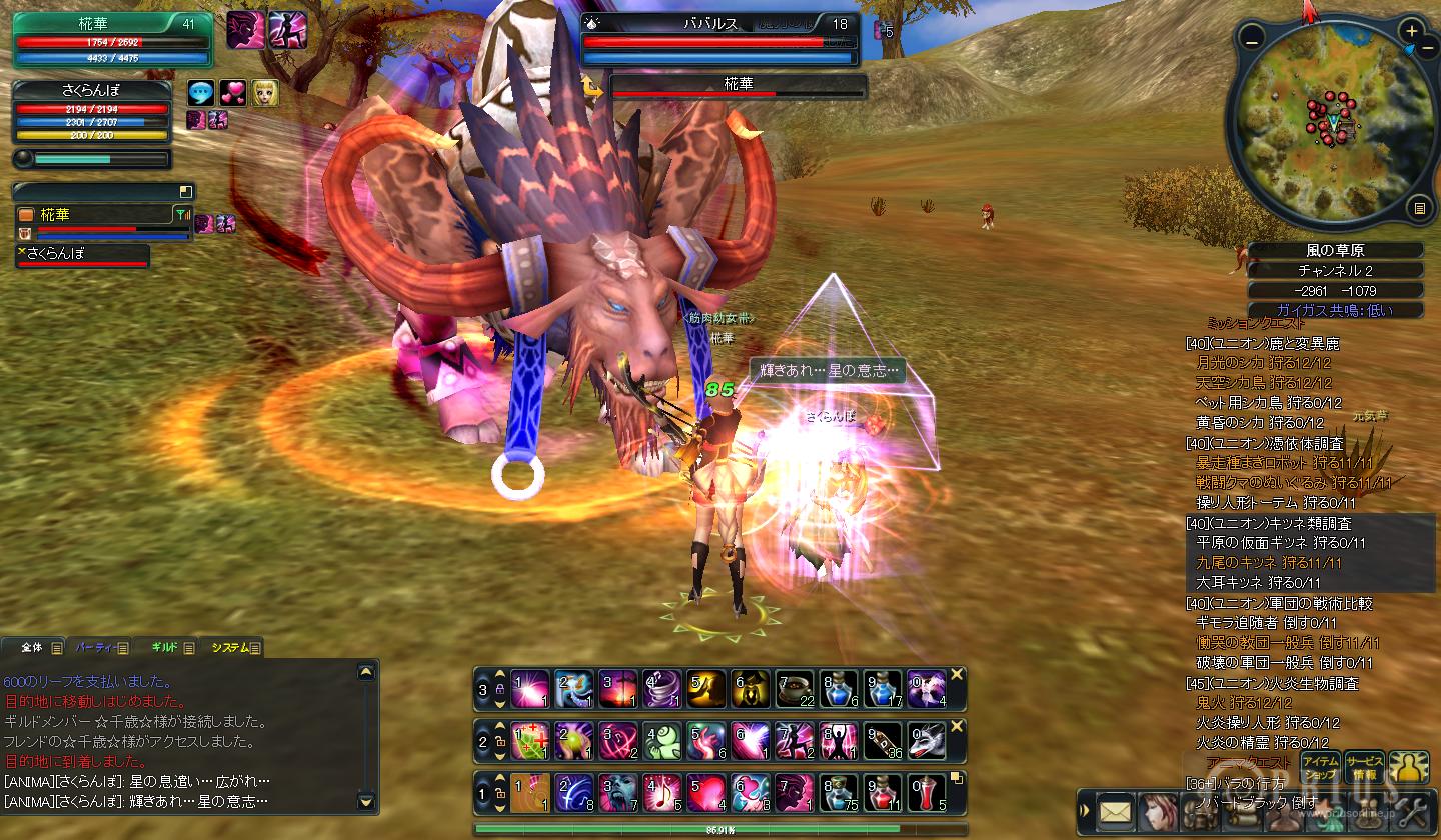 おはようございます。 一昨日と昨日と今日の出来事でも。 一昨日(14日)。 ギルドメンバーでいつもの如く猛毒D行ってきました。 iCHiがスコル(もしくは、トカゲ)黒いブーツをドロップしたのですが、羨ましかったです(´・ω・`) 今度行くときは俺が落としてやるモンね!!!(`・ω・´) で、その後移動してたら、椛の張った画像のような状況に陥ったわけです。 俺に触れると(ry なんて言うわけがない!!!!!!!!!!!!!!! ってか、言えるわけがないorz 昨日(15日)。 ひたすらネームドを探しては倒したり、クエストしたりしてました。 ネームドの結果はサブラ3体。 そのときの画像を取っとけば良かったなーと後悔… で、就寝&起床。 深夜と同様、ネームドを探しては倒したり、クエストしたりしてました。 その後、野良PTで背徳D2週しました。 1週目は、クエ有りで2週目はボス直。 1週目は30~50分くらい掛かってたのが、20分たらず。 2週目はボス直だったせいでサクサク進みすぎてその速度にビックリしました。 ボス直いいですね!!! 背徳から帰ってきたら仮眠&起床。 起きたら恒例?のネームド探し&討伐。 サブラ、ザブーム、ケンタラヌスを探してみるもいず、ラナエトン目当てで目的地に来てみると、居たわけで… 以前、討伐を試みるも無残にやられてしまったので、そのリベンジも兼ねてフルボッコしてやんよ!!!! ってことで、戦闘開始!!! 1回離れすぎたせいでリスポーン?したり、近くに居た剣士さんやガンナーさんに雑魚Mobを倒したりしてもらって、何とか討伐。 画像は、撮り忘れましたorz スクリーンショットを撮る癖をつけたほうがいいですね~^^; で、それなりなアイテムをGETしてユニオンやらミアのクエストを手伝ったりをして、15日は終了。 今日(16日) メンバーがそろわなかったりしたので、1人で猛毒に行ってみました。 入ってすぐのところで、 トカゲ3体 妖精6体 蜘蛛2体 を1体ずつ倒したところで、もう無理だと悟り、ガイガスでトカゲ&蜘蛛をまとめ狩りして、出てきました。 やっぱり猛毒ソロは無理ですね。 さて、今日も午後からですが授業があるので、寝ますかね。 帰ってきたら背徳いこ~っと。。。 おやすみなさ~いノシ PR 2009.07.15 Wed 22:30:02 【椛華】台風メアリーの冒険日記②どうもこんばんはーメアリー参上っ