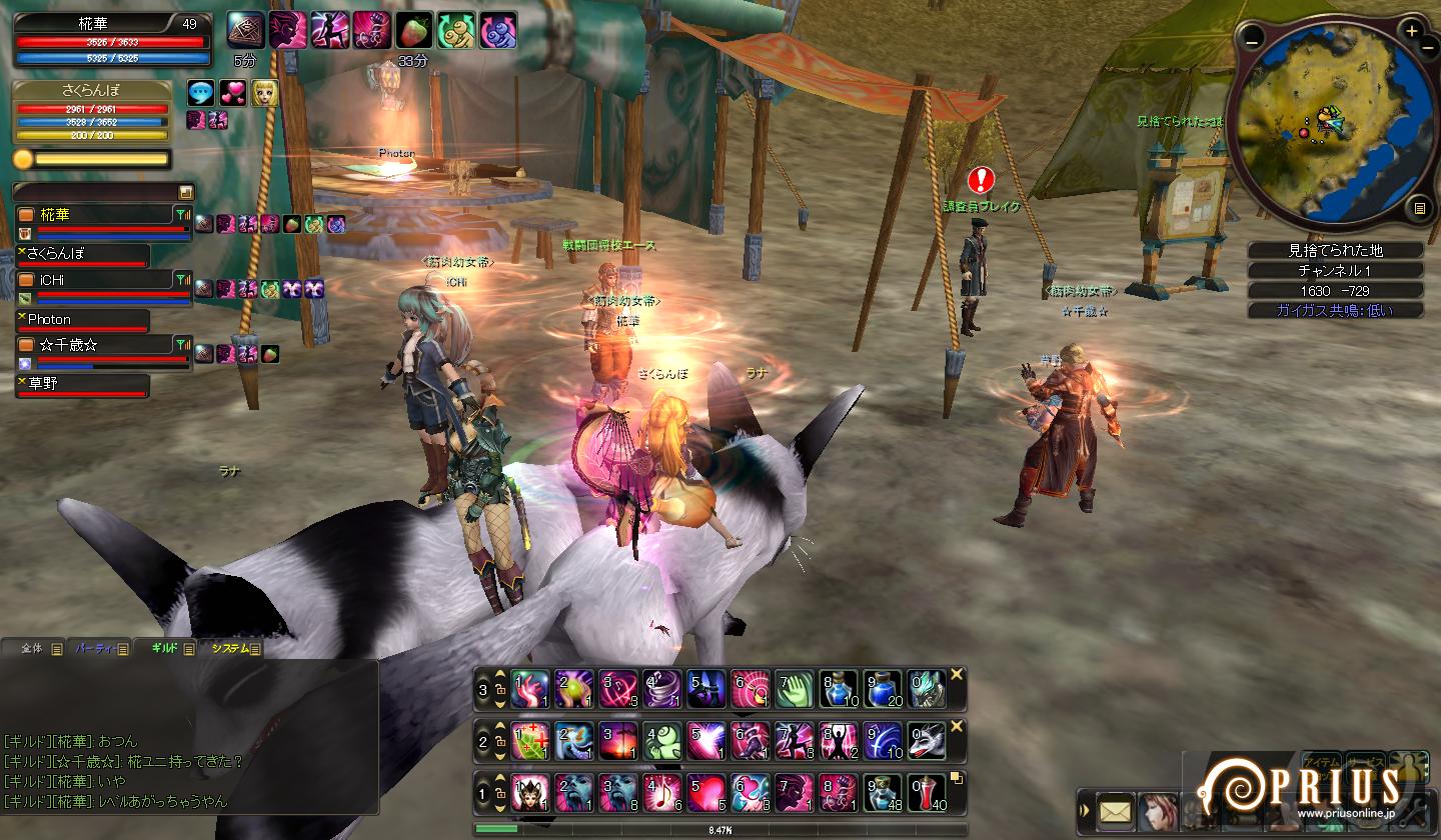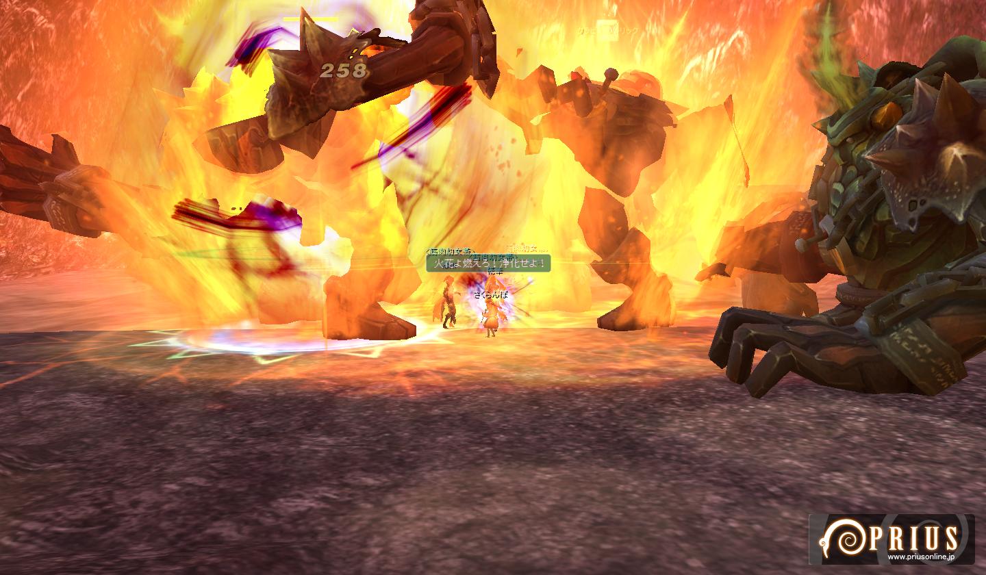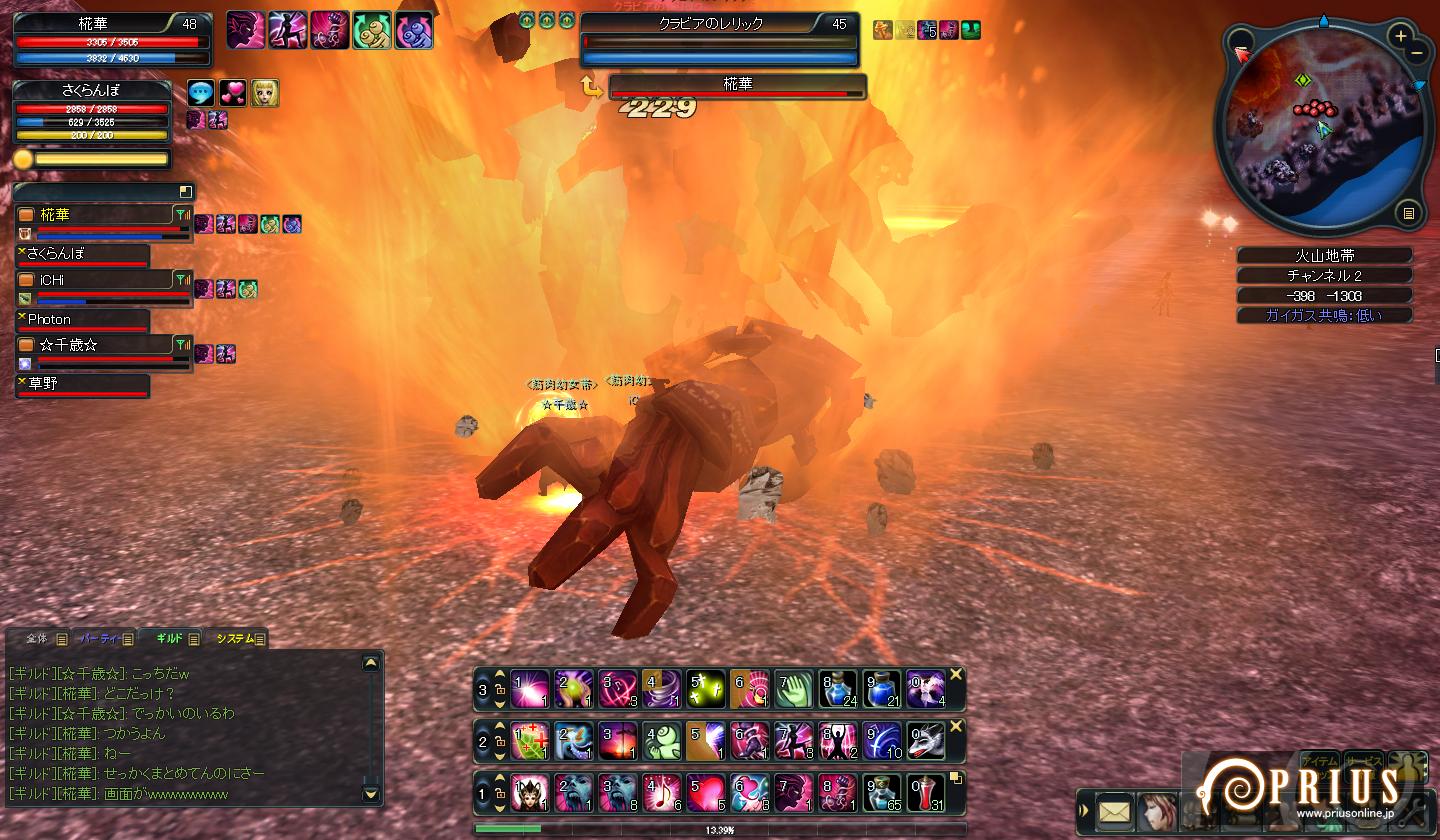 他の趣味に時間を奪われつつ、相変わらずのんびりぐだぐだとしています。 今まではスペック的に色々と危なっかしいノートパソコンでPRIUSをプレイしていたのですが、 8月末に念願のデスクトップPCを購入。画面大きいしヌルヌル動くので感動しきりです。 更新を怠っていた分、今回は出来る限りネタ放出しますよーっ。 ↑ 夏のイベント最終日にしてようやくケパお面が手に入ったので思わずSS。 NEW PCでの初めてのショットになります。 結局期間中に丸下駄が手に入らなかったので、靴は名探偵を着用。 袴ブーツはともかく、浴衣ブーツってどうなんでしょうね・・・ ↑ 「私がビシャスだ」・・・いえ、焚き火です。 丸焼きになって食べられておしまいっ ↑ 二人でぼーんやり。 アニマのにんまり顔に時々(´・ω・`)←こうなる。 ↑ ユニオン中のSS。 椛華のメアリーさんで地竜を倒したら綺麗な円になりましたっ。 ↑ ユニオン中のSSその2。 椛華のメアリーさんでペンギンを倒したら何というか死屍累々。 正直怖いです・・・ ↑ ユニオン中のSSその3。 あまりにギモラ追随者の屍がせくすぃ~だったのでつい← ↑ 久々に英雄に行ってみた。 道中にある謎の穴(?)。カメラアングルによって見えたり見えなかったりするのですが、 いったい何なんだろう・・・ ↑ 火山のミッション中にネームドに遭遇。 でかい上に周りが真っ赤っかで目が痛い・・・ ・・・と、ここまでは前置きです。 ここからようやくタイトルに突っ込んだ内容ですよ。 ガンナーで爆弾ときたら・・・ボムスローしかない! ようやくLv40になり、念願のボンバーマン・・・いや、ボンバーウーマン?になれました! どうしても試してみたかったのでベルア族の皆さんにお集まり頂き・・・ ↑ ・・・死屍累々。 その後、千歳が種族ガイガスを取るクエストをやるので野次馬ついでに シャーンシャーンシャーンシャーンシャーン・・・ ↑ どっかーん。 敵が大きいと、爆発のエフェクトも大きくなるみたいです。 ↑ 更にギルメンにお手伝いしてもらってオーバードライブのクエも楽々クリア。 Lv40になった事で、下降気味だったモチベーションもほんのり右肩上がりになりました。 次の目標はレガントル一式・・・かな? =============================================== ブログランキングに参加中です! よろしければ是非ワンクリックお願いします(`・ω・´) |