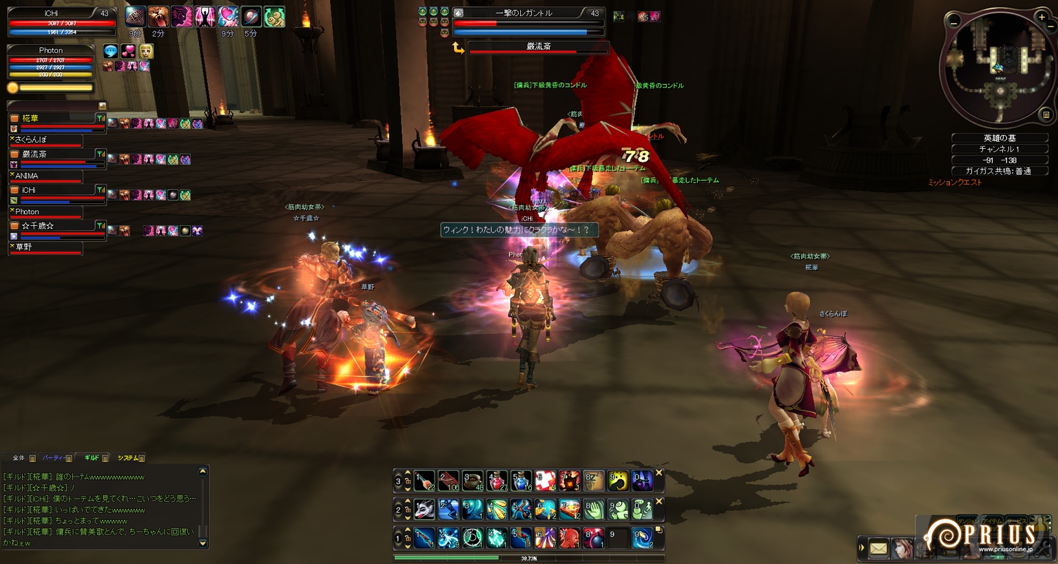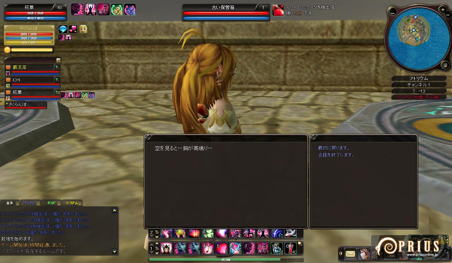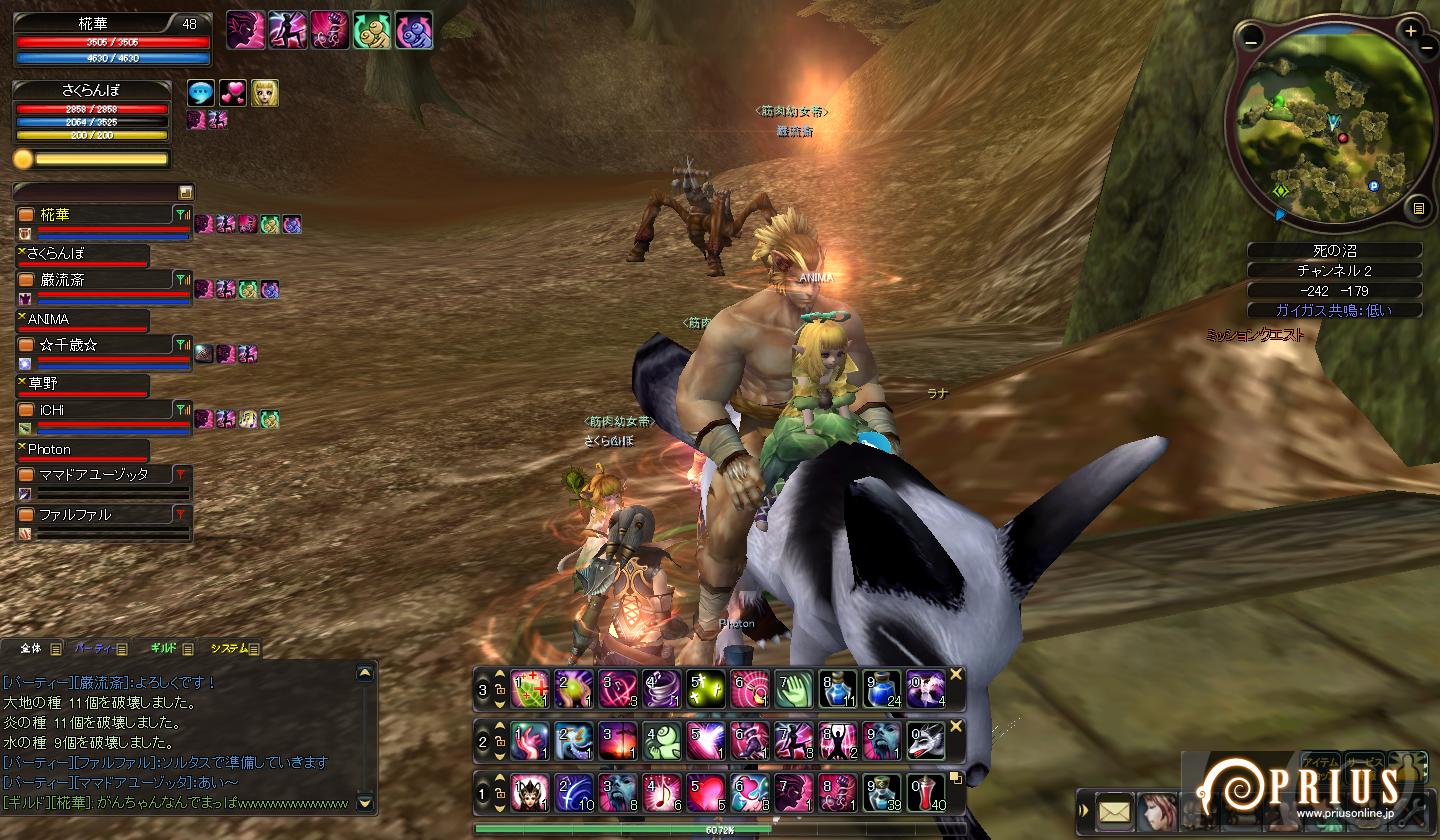 他の趣味に時間を奪われつつ、相変わらずのんびりぐだぐだとしています。 今まではスペック的に色々と危なっかしいノートパソコンでPRIUSをプレイしていたのですが、 8月末に念願のデスクトップPCを購入。画面大きいしヌルヌル動くので感動しきりです。 更新を怠っていた分、今回は出来る限りネタ放出しますよーっ。 ↑ 夏のイベント最終日にしてようやくケパお面が手に入ったので思わずSS。 NEW PCでの初めてのショットになります。 結局期間中に丸下駄が手に入らなかったので、靴は名探偵を着用。 袴ブーツはともかく、浴衣ブーツってどうなんでしょうね・・・ ↑ 「私がビシャスだ」・・・いえ、焚き火です。 丸焼きになって食べられておしまいっ ↑ 二人でぼーんやり。 アニマのにんまり顔に時々(´・ω・`)←こうなる。 ↑ ユニオン中のSS。 椛華のメアリーさんで地竜を倒したら綺麗な円になりましたっ。 ↑ ユニオン中のSSその2。 椛華のメアリーさんでペンギンを倒したら何というか死屍累々。 正直怖いです・・・ ↑ ユニオン中のSSその3。 あまりにギモラ追随者の屍がせくすぃ~だったのでつい← ↑ 久々に英雄に行ってみた。 道中にある謎の穴(?)。カメラアングルによって見えたり見えなかったりするのですが、 いったい何なんだろう・・・ ↑ 火山のミッション中にネームドに遭遇。 でかい上に周りが真っ赤っかで目が痛い・・・ ・・・と、ここまでは前置きです。 ここからようやくタイトルに突っ込んだ内容ですよ。 ガンナーで爆弾ときたら・・・ボムスローしかない! ようやくLv40になり、念願のボンバーマン・・・いや、ボンバーウーマン?になれました! どうしても試してみたかったのでベルア族の皆さんにお集まり頂き・・・ ↑ ・・・死屍累々。 その後、千歳が種族ガイガスを取るクエストをやるので野次馬ついでに シャーンシャーンシャーンシャーンシャーン・・・ ↑ どっかーん。 敵が大きいと、爆発のエフェクトも大きくなるみたいです。 ↑ 更にギルメンにお手伝いしてもらってオーバードライブのクエも楽々クリア。 Lv40になった事で、下降気味だったモチベーションもほんのり右肩上がりになりました。 次の目標はレガントル一式・・・かな? =============================================== ブログランキングに参加中です! よろしければ是非ワンクリックお願いします(`・ω・´) |